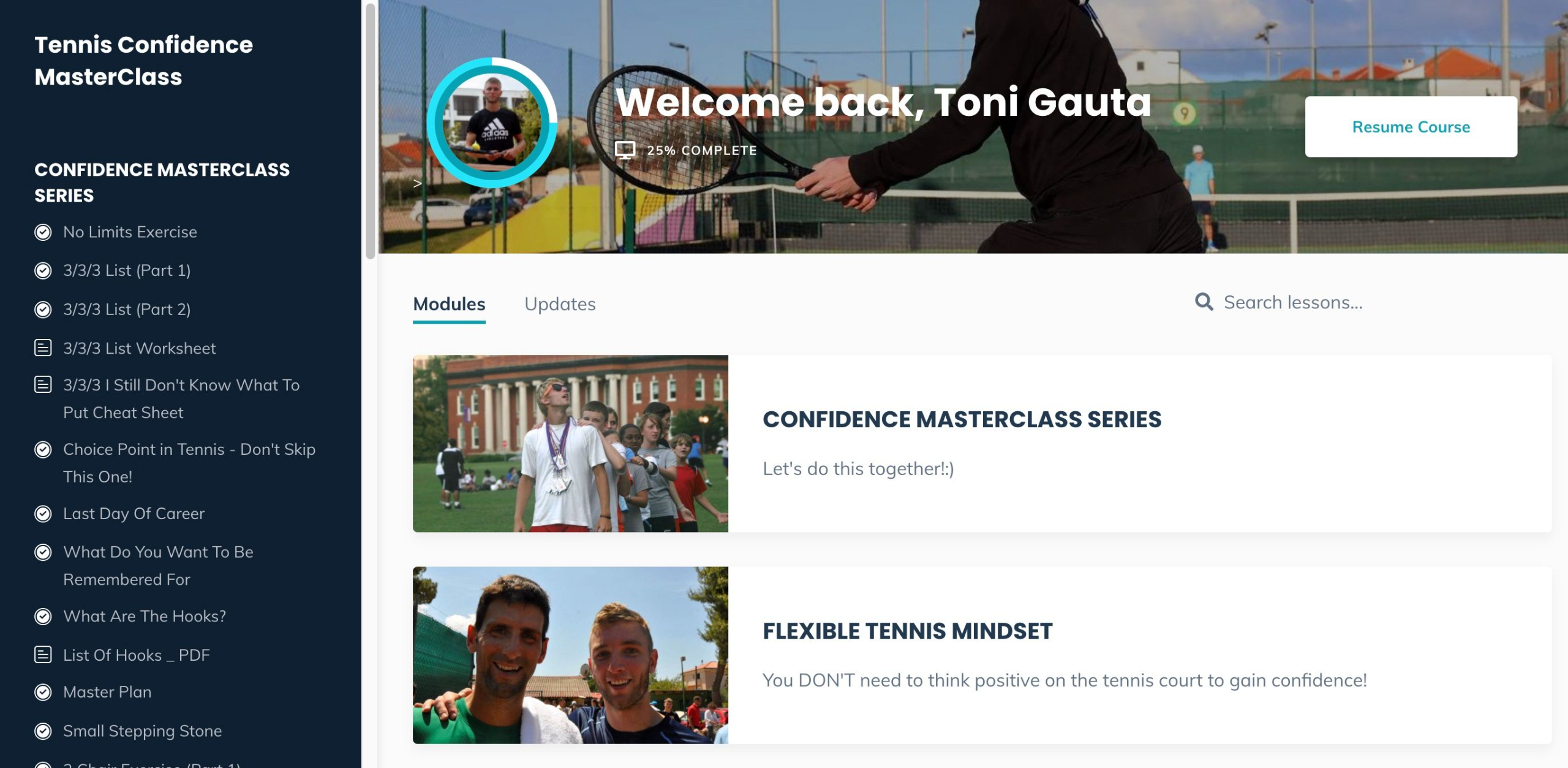 • BONUS: Additional mental training exercises learned in Real Madrid soccer academy and Olympic archery team adapted and adjusted specifically for elite tennis players